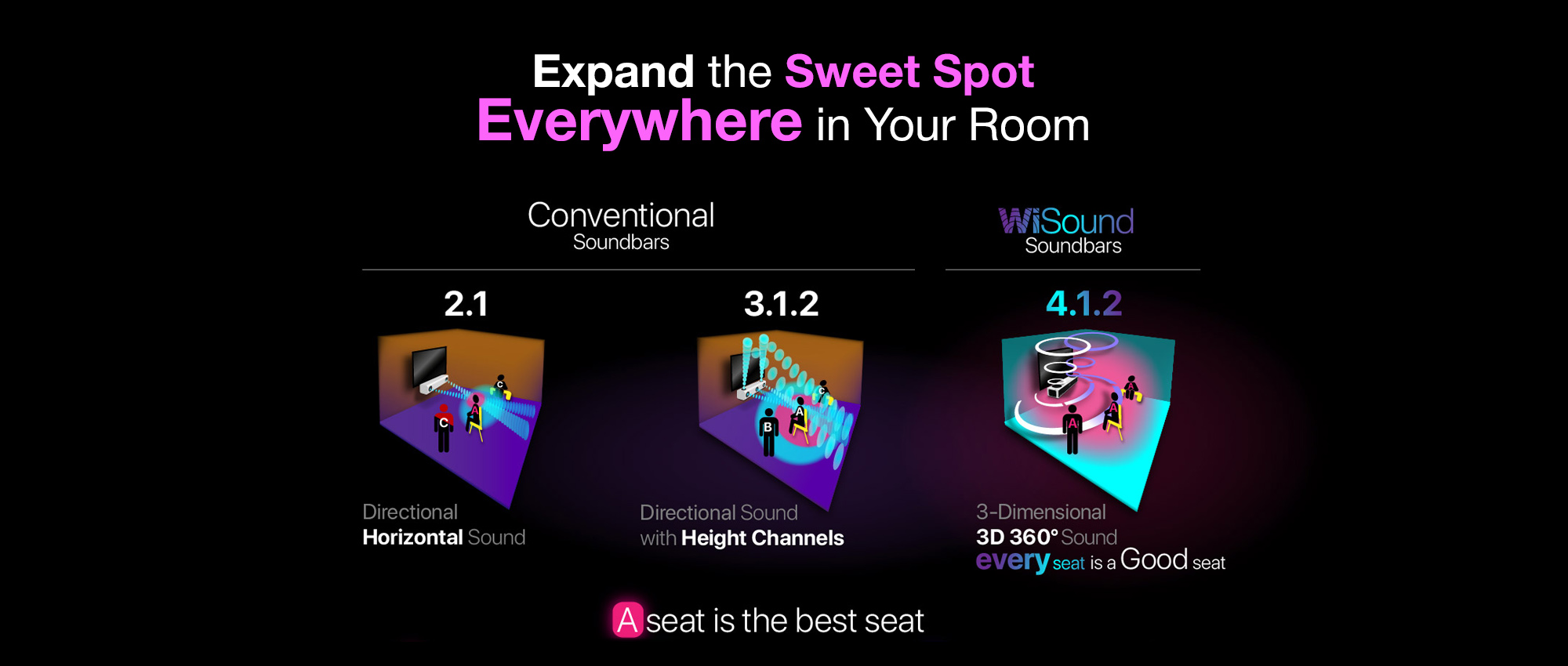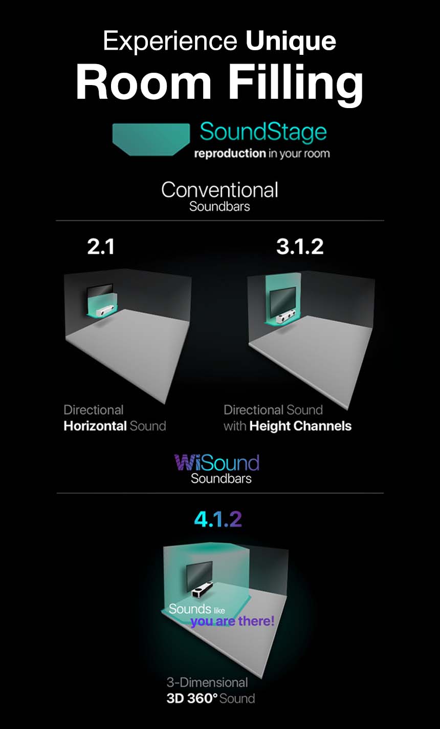 Superior acoustic experience than the common 3.1.2 soundbars with height channels