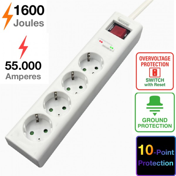 Surge Protector with 1600Joules, 4-sockets and Reset Switch